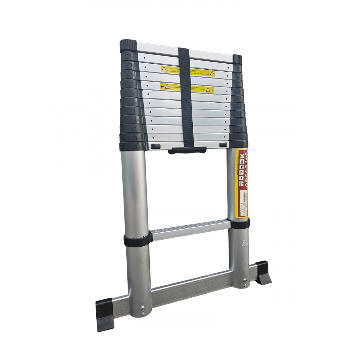 Teleskopska prislonilna lestev "One-Touch" Tark je izdelana iz visoko kakovostnega aluminija, ki zagotavlja nosilnost do 150 kg. Raztegne se do višine 3,8 m in ima vse skupaj 13 stopnic, z razmikom med njimi 30 cm. . Ima inovativno funkcijo za hitro odpiranje in zapiranje z enim samim klikom. V zloženem stanju meri 89 cm in tehta samo 11 kg kar jo naredi izjemno praktično in idealno za vsakega uporabnika. Teleskopski mehanizem omogoča enostavno prilagoditev višine, njena zložjivost pa jo naredi enostavno za shranjevanje in transport . Opremljena je z širokim stabilizatorjem z protizdrsnimi nogicami, varnostnim zaklepanjem in idnikatorji zaklepa ki zagotavljajo večjo stabilnost in varnost. EN131 certifikat. Uvoznik : Tark d.o.o. ; Poslovna Cona A 35 ; 4208 Šenčur ; Slovenija ; +38642354480 ; info@tark.si |