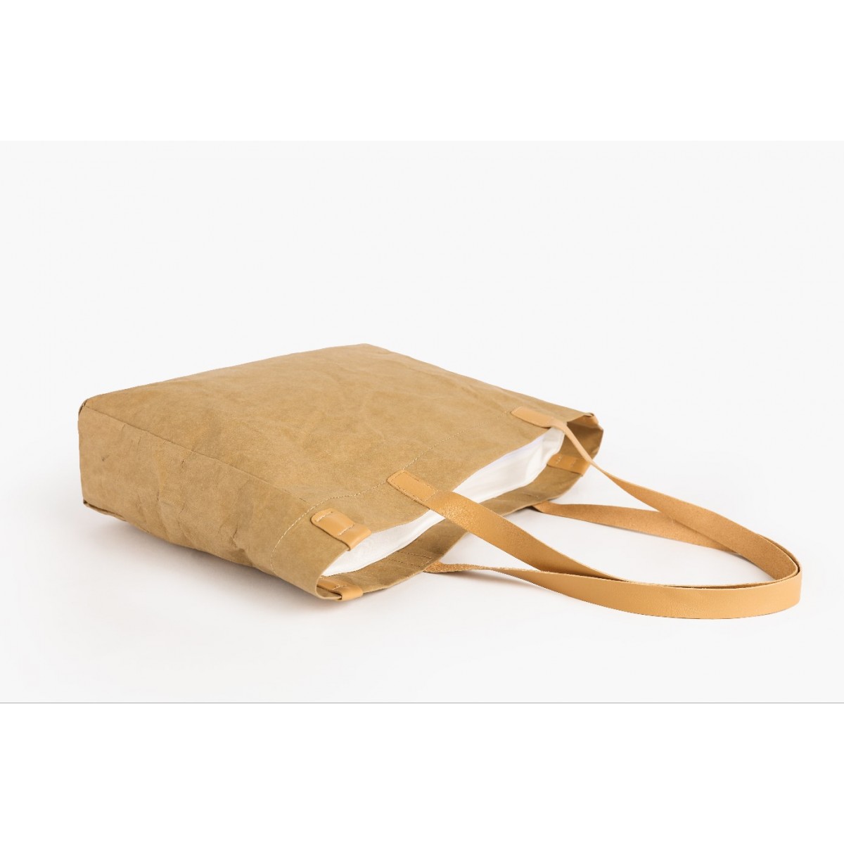 Nakupovalno torba iz vzdržljivega pralnega papirja z notranjo oblogo iz tkanine.
